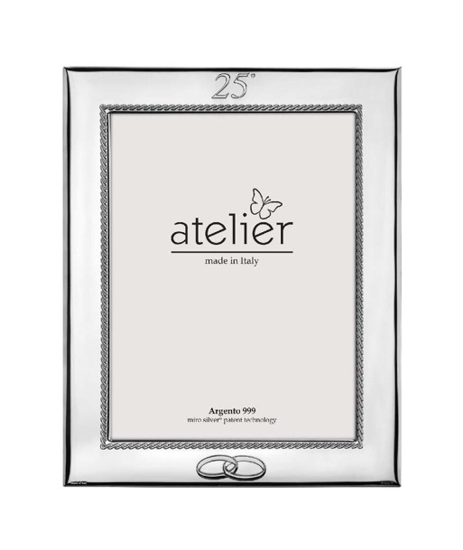 Bilaminado en plata, marco doble con grabado en relieve de alianzas y 50 aniversario para poner una foto representativa de cada una de esas fechas tan señaladas, con grabado árbol de la vida