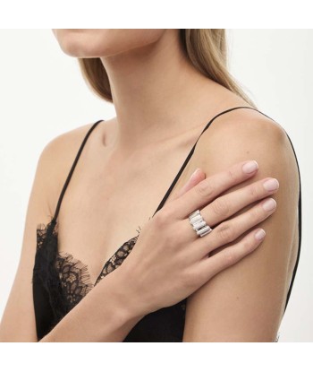 Plata de 1ª ley , anillo ancho con bandas de pavé de circonitas