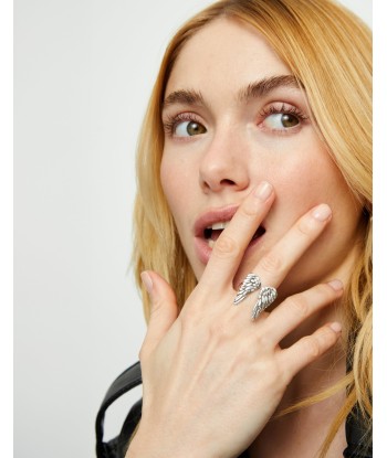 Impresionante anillo en forma de alas, realizado en metal bañado en plata