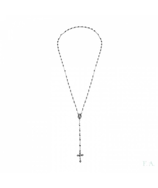 Rosario de Plata 1ª Ley FL4010 bola lisa 4mm, con cierre de reasa para que puedas usarlo como collar, cruz plana labrada 10x20