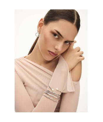 Brazalete plata lisa abierto, en un extremo perla Majórica y en el otro círculo cuajado de circonitas