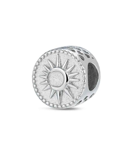 Sol y luna grabados en este precioso charm con los bordes repletos de corazones calados
