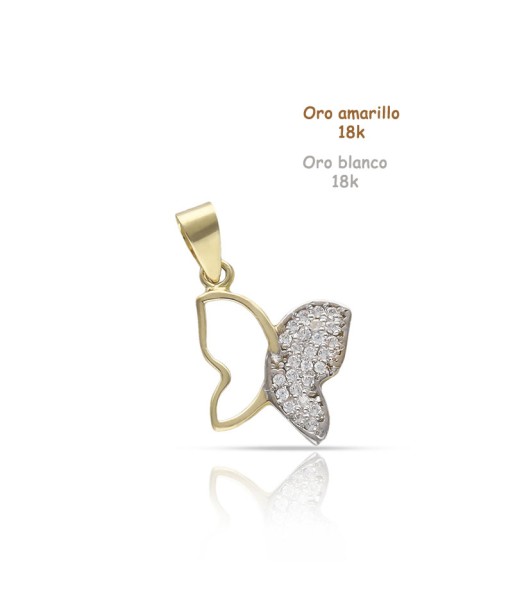 Colgante mariposa en oro bicolor de 18 quilates (18K- 750mm) . Grabado con su debido sello de contraste de fabricación de oro de 1ª Ley.