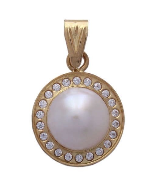 Colgante en oro de 18 quilates (18K- 750mm) con media perla . Grabado con su debido sello de contraste de fabricación de oro de 1ª Ley.