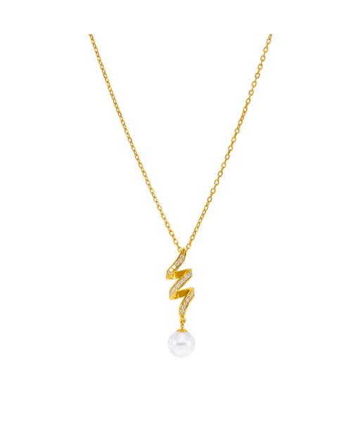 Colgante en forma de tirabuzón con perla blanca colgando.