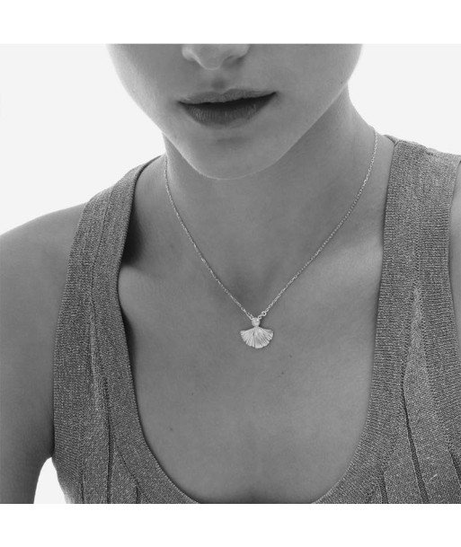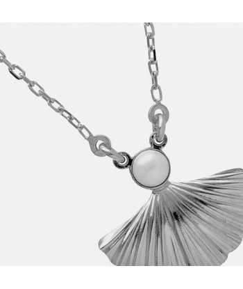 Collar corto en plata de ley rodiada, en forma de abanico con una perla central arriba