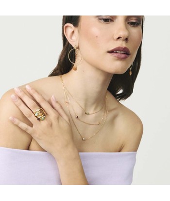 Aro tubo plano en disminución liso brillo, en plata de 1ª ley con baño de oro, y en el centro una aventurina verde, de la colección MEDITERRANEO de Durán Exquse