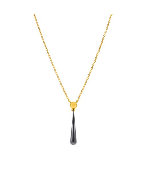 Collar geométrico en Material: Plata de 1ª Ley 925 mil, con baño oro 18k y lágrima en baño color negro