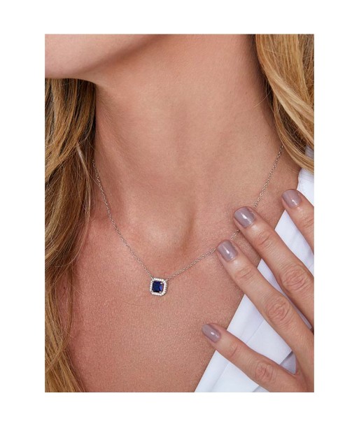 Pendientes octogonales con circonita azul cuadrada engastada entre cuatro garras y cuajo alrededor para otorgarle aún más brillo.