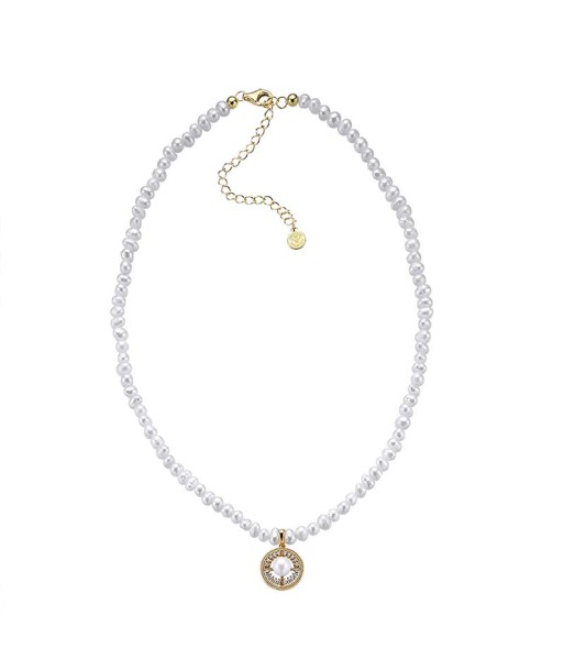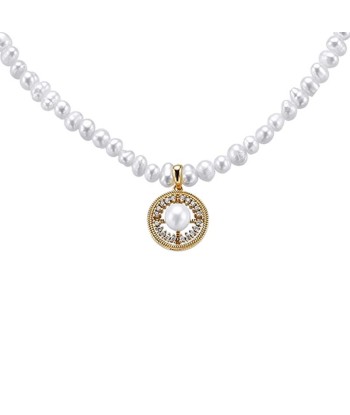 Gargantilla de perlitas naturales barrocas con colgante central formado por una perla rodeada de circonitas, de la colección CoCo