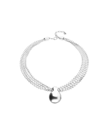 Collar corto de bolas con cierre mosquetón con cadena ajustadora de medida terminando en el icónico candado con el logotipo UnoDe50 grabado