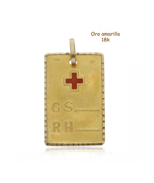 Colgante placa oro 18k grupo sanguíneo PL100 cruz roja 21x33