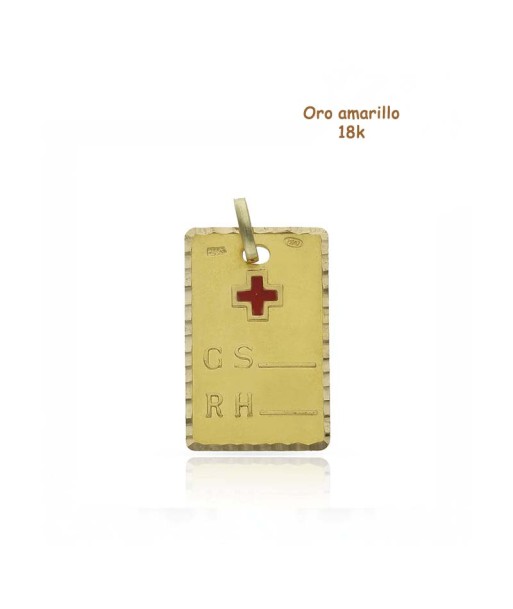 Colgante placa oro 18k grupo sanguíneo PL102 cruz roja 16x25
