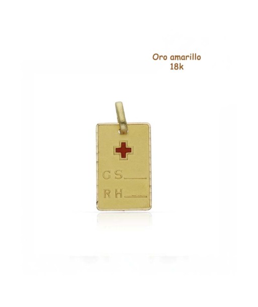 Colgante placa oro 18k grupo sanguíneo PL1012 cruz roja 12X19