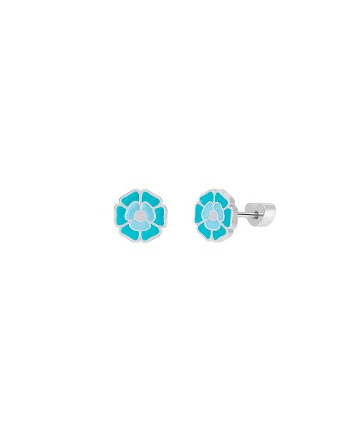 Pendiente en forma de flor, esmalte azul y turquesa