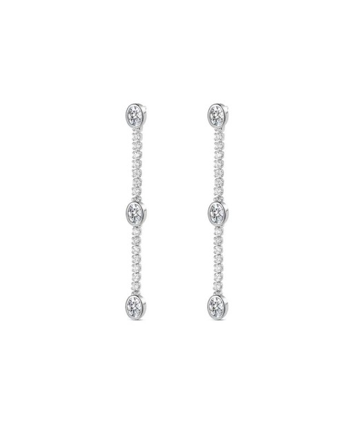 Elegantes y finos pendientes largos cuajados de circonitas estilo riviere con 3 circonitas, talla oval