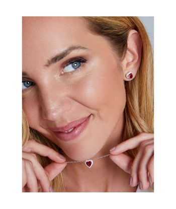 Gargantilla de cadena con centro en forma de corazón con circonita roja engastada entre tres garras y cuajo alrededor para otorgarle aún más brillo.