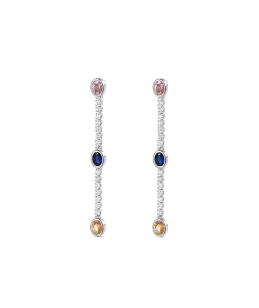 Elegantes y finos pendientes largos cuajados de circonitas estilo riviere con 3 circonitas talla oval multicolor