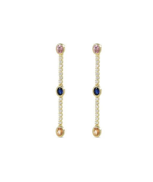 Elegantes y finos pendientes largos cuajados de circonitas estilo riviere con 3 circonitas talla oval multicolor
