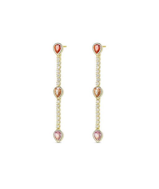 Elegantes y finos pendientes largos cuajados de circonitas estilo riviere con 3 circonitas talla lágrima multicolor