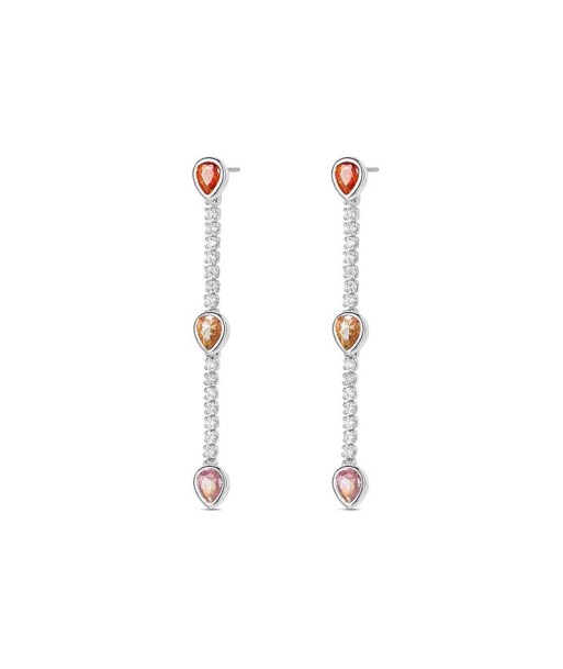 Elegantes y finos pendientes largos cuajados de circonitas estilo riviere con 3 circonitas talla lágrima multicolor
