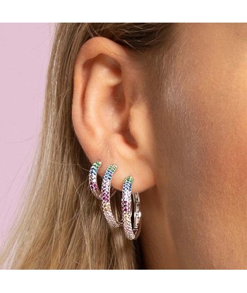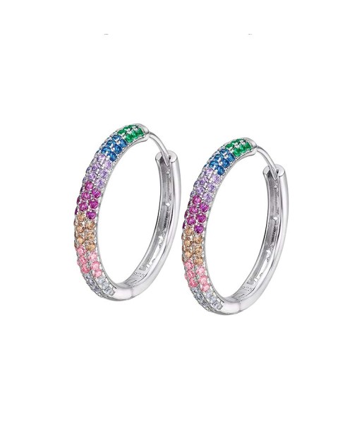 Pendientes aro en plata 1ª Ley, 925 milésimas con tres filas de circonitas multicolor engastadas