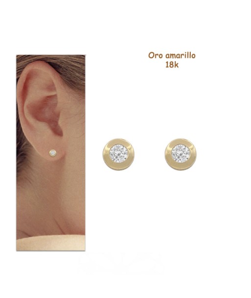 Pendientes chatón oro 18 quilates (18K- 750mm). Grabado con su debido sello de contraste de fabricación de oro de 1ª Ley.