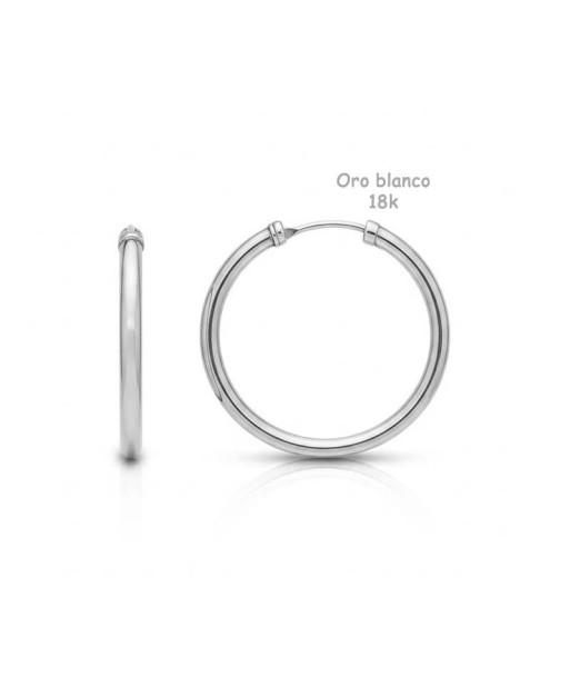 Pendientes aro de oro blanco de 18 quilates (18K- 750mm). Grabado con su debido sello de contraste de fabricación de oro de 1ª Ley.
