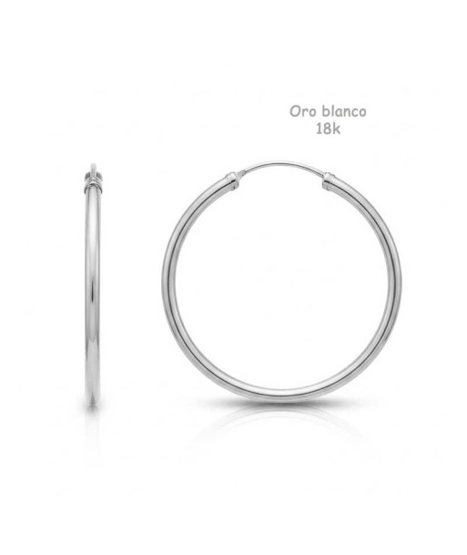 Pendientes aro de oro blanco de 18 quilates (18K- 750mm). Grabado con su debido sello de contraste de fabricación de oro de 1ª Ley.
