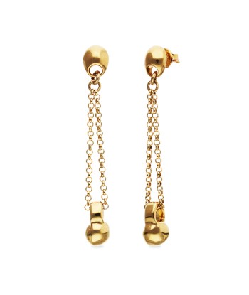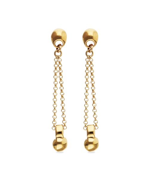Pendientes largos formado por dos cadenas con una gota central pulida que cae a modo de gravedad estirando las cadenas y otorgándole movimiento