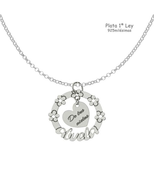 Gargantilla con corazón y disco alrededor para grabar lo que desees, en plata 1ªley. Grabado con su debido sello de contraste de plata 925milésimas