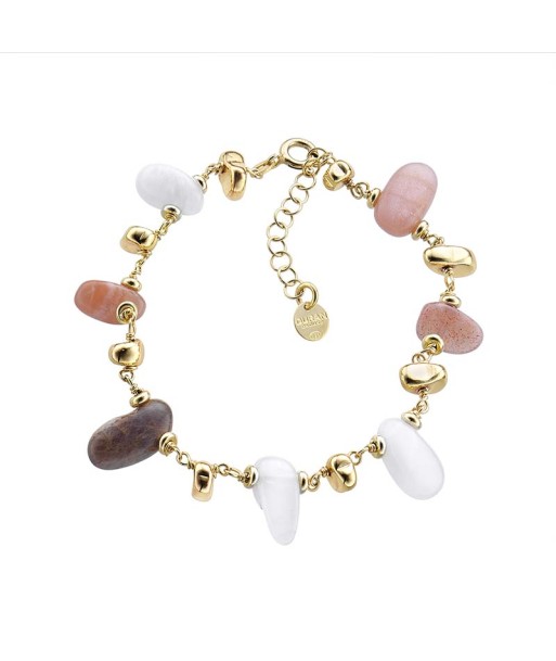 Una gargantilla formada por piedras luna asimétricas y pulidas de varios colores con tonos suaves de Durán Exquse