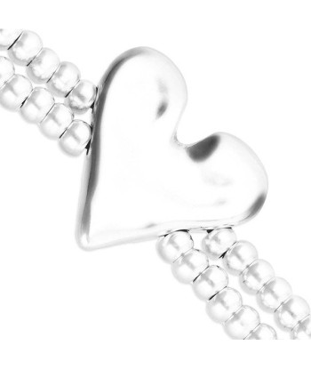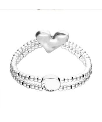 De la colección PALPITO de Unode50. Preciosa pulsera doble de cómodo elástico con un gran corazón central con volumen y suaves ondulaciones