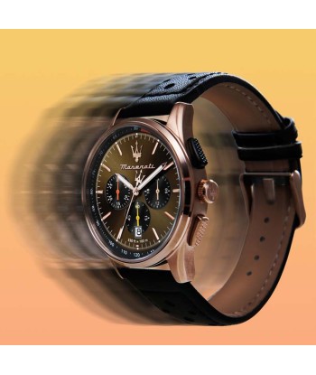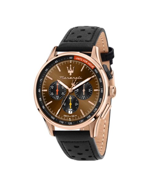 Reloj Maserati para hombre, ref R8871624011 de la colección SORPASSO, de correa de piel y caja acero IP bronce con una preciosa esfera color marrón chocolate contrastando índices y agujas en dorado