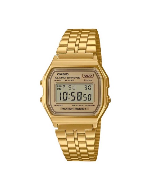 Reloj digital de la colección ICONIC de Casio, estilo años 80 con detalles actualizados, con revestimiento iónico de color oro