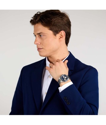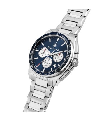 Reloj Maserati para hombre, ref. R8873652005 De la colección VELOCITÁ , de acero con una esfera azul oscuro con detalles rojos y bisel numerado azul sobre una caja color plateada del acero