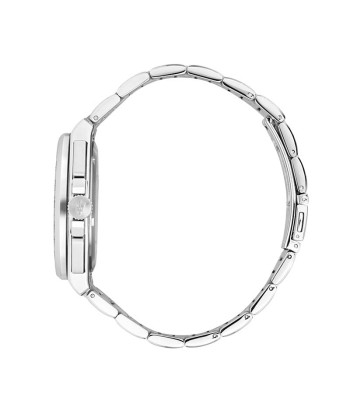Elegante reloj para caballero con fondo esfera blanco entramado y numeración de gran visión, resaltando sus agujas azules