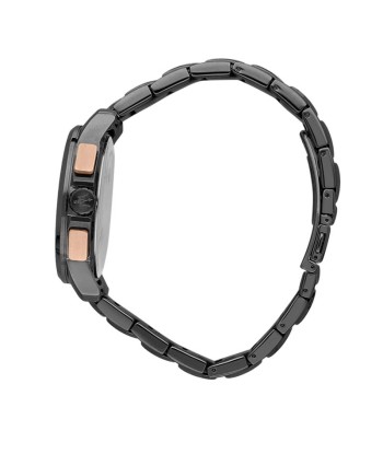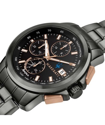 Esfera color crema con detalles naranjas y correa combinada en negro y verde crean un diseño singular