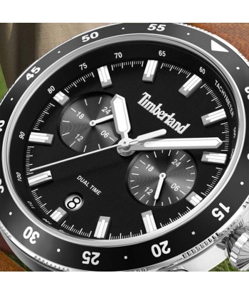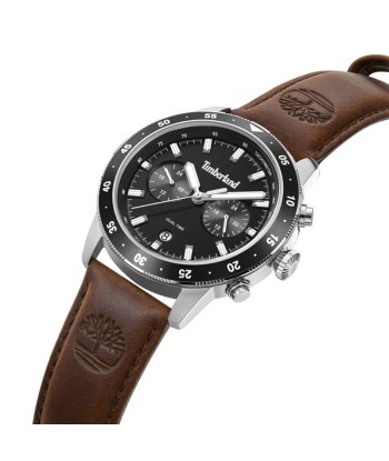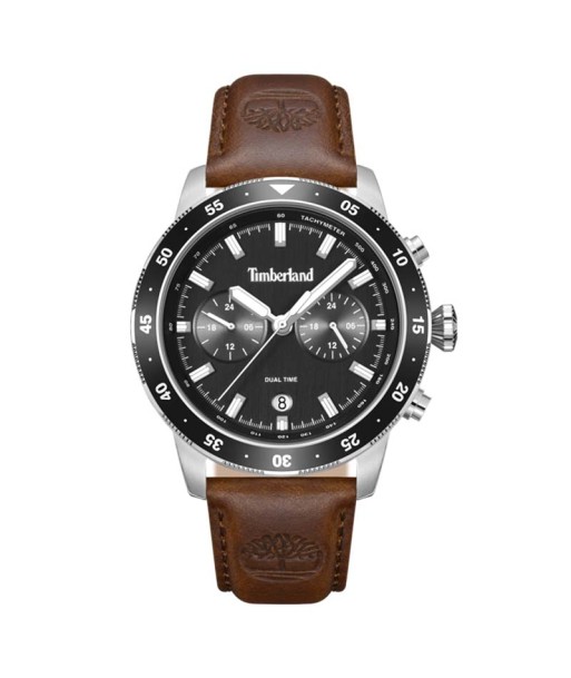 Reloj de caja de acero y correa de piel marrón oscura, con el icónico logotipo del árbol grabado en los extremos