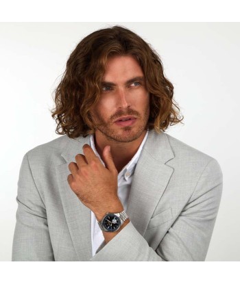 Caja acero con detalles de tornillos en el bisel negro, dando un aspecto más deportivo
