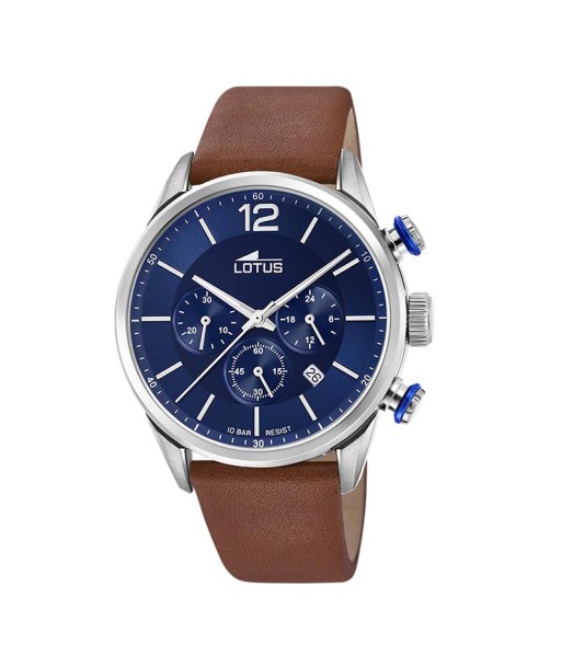 Reloj de caja de acero y correa de piel marrón, con el icónico logotipo del árbol grabado en los extremos