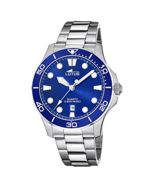 Reloj Seiko cronógrafo azul con bisel numerado dándole un aspecto muy deportivo