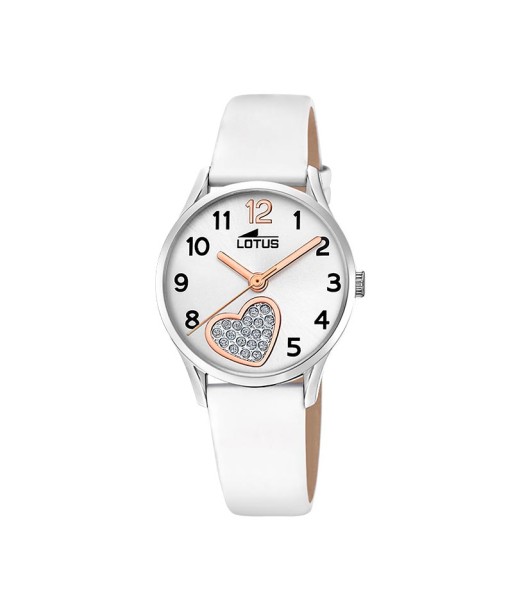 Precioso reloj para el día de su comunión, con correa blanco y un detalle de corazón en su esfera, detalles en rosé