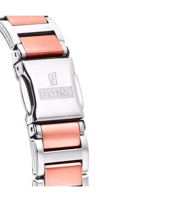 Reloj acero , bicolor detalle de la caja en rosa con grabado en el fondo de esfera el árbol de la vida e índices de circonitas