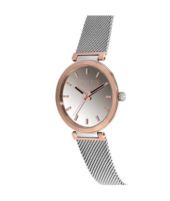 Para los amantes de la relojería hecha en Suiza, este reloj para mujer todo en acero, cristal zafiro anti reflejos con un original fondo de esfera azul intenso de cuadraditos y un bisel matizado y facetado en 8 tramos contrastando con el brillo en sus caras